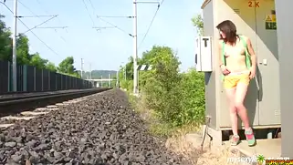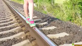 Девушка захотела поласкать себя возле железнодорожных путей