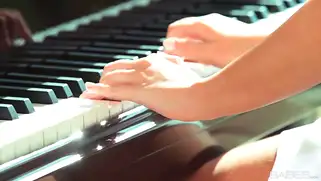 Молодая пианистка села на пол рядом с инструментом и дрочила