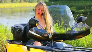 Русская гонщица показала сиськи и каталась на машинке на природе