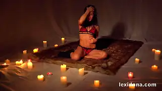 Раздевается до трусиков и ласкает письку до стонов русского оргазма летом