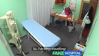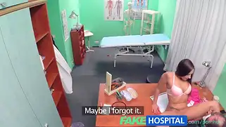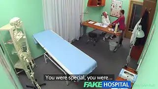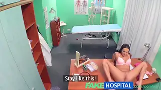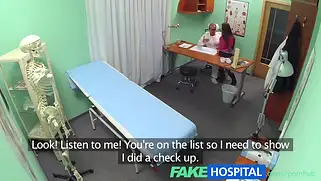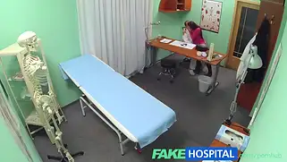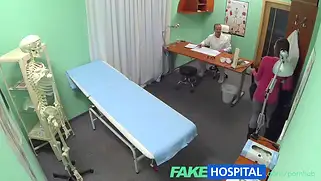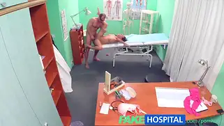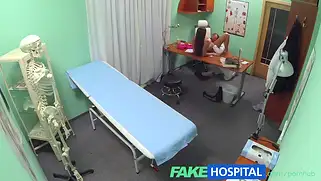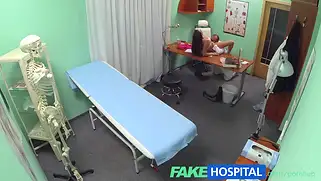 Секс доктор раздвигает ноги своей пациентке и трахает на столе