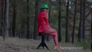 Порно видео Молодые, Блондинка - Молодая русская блондинка в зеленой шляпе позировала на стуле в лесу, а потом оказалась на озерном пляже, где разделась догола и позировала обнаженной