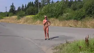 Порно видео На свежем воздухе, - Девушка будет голожопая ходить по дороге. Она раздевается публично и начинает позировать своими титьками и попкой. Она ходит по трассе и красуется своим телом.