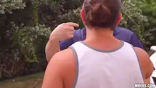Худенькой Ольге попку спермой заливает после траха на природе у машины