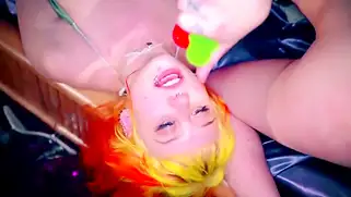 Белая потаскушка в чулочках встречает Новый Год безумной порно оргией