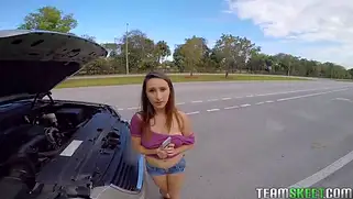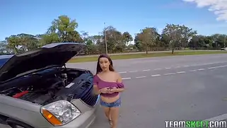 За помощь с машиной девушка получает классный секс в машине