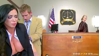 Danny D - Баба с большими титьками трахается прямо в зале заседания во время судебного процесса. Телочка с большими грудями классно сосет, а адвокат трахает её в разных позах у трибуны.