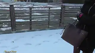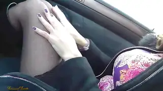 В холодный зимний день девушка сосет член в машине парню и дрочит
