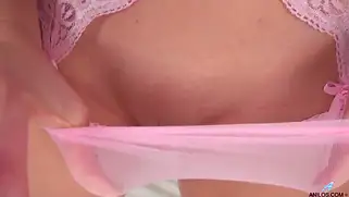 Напялив на себя розовые чулки, девушка начала ласкать себя рукой