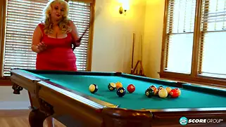 Порно полной блондинки с мастурбацией на бильярдном столе