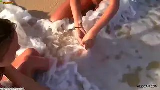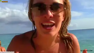 Молодые нудистки на пляже напились и занялись куни сексом