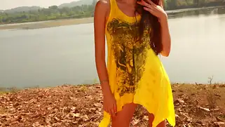 Порно видео На свежем воздухе, Молодая русская - Молодая русская шатенка в желтом платье приехала на озеро на новом скутере и разделась под большим деревом, чтобы раздвинуть ноги и показать пизду публике