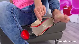 Девушка нассала в штаны и стала дрочить киску секс игрушкой