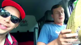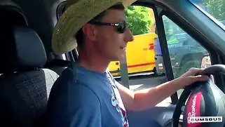 Аппетитная брюнетка сосет хуй негра в фургоне и трахается с мужиком