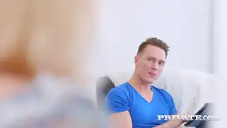 У кучерявого друга русский секс с тяночкой — ебля на диване с лизанием писи и хуя