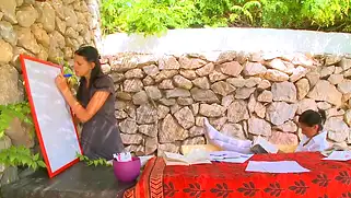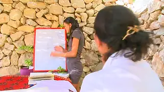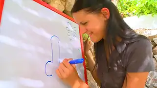 Порно видео Мастурбация, Фистинг - Симпатичные русские девушки во время занятий во дворе нарисовали хуй на доске и решили провести фистинг на улице, одна из блядей кончила во время дрочки