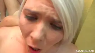 Русскую кралю с натуральными титьками классно трахнут, заливая лицо спермой