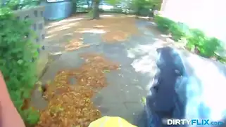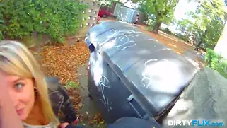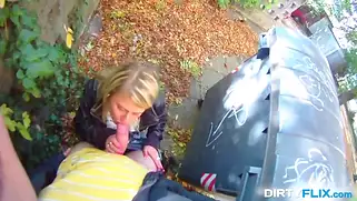 Порно видео Минет, Девушки ххх - У парня стоит хуй, а телочка захотела трахаться с ним в разных позах. Она пошла за мусорный бак и они устроили публичный секс на улице возле мусорного бака.