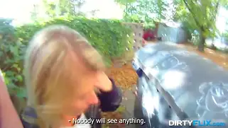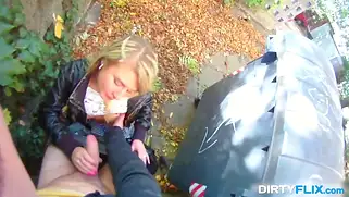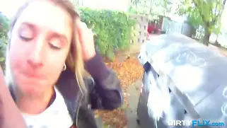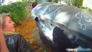Худенькой Ольге попку спермой заливает после траха на природе у машины