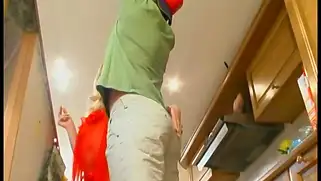 Муж не замечает как похотливая жена трахается с сантехником на кухне