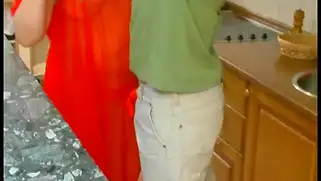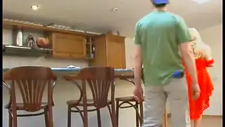Зрелая русская толстушка трахается с парнем на кухне и кончает