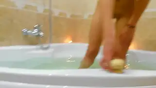 Девушка с самотыком купается в ванне и с наслаждением дрочит писю