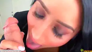 - Шикарная брюнетка делает минет и трахается от первого лица