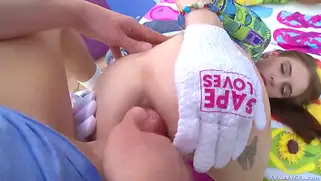 Парень любит секс в перчатках и имеет жопу девушки членом большим