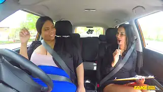 Жирная негритянка трахается в машине с белой грудастой бабой