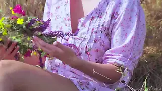 Порно видео На свежем воздухе, ххх русское - Молодая русская нудистка оказалась в горах и сплела венок из цветущих трав, телочка сняла трусики и стала позировать обнаженной для зрителей, показывая прелести