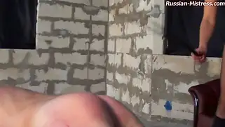 Русская госпожа привезла раба на стройку и наказала ягодицы парня
