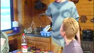 Retro Models - Молодые парни бухали на даче у зрелой русской телки с короткой стрижкой, давали блондинке в рот и стали трахать пизду во время пьяной групповой ебли дырок