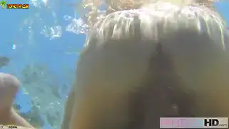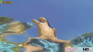Брюнету классно ебут в воде и кончают на лицо и в рот телки