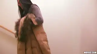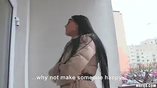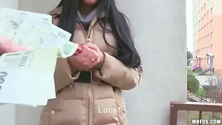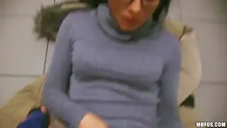 Брюнетка сосет член за деньги в подъезде и парень кончает в рот