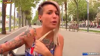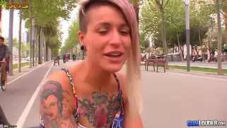 Разодрал жопу татуированной сучке и засунул балду в пиздень