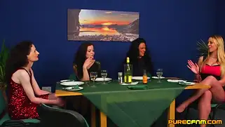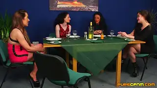 Порно видео В Сперме, - Толстая баба собрала всех подруги и на вечеринке позвала в гости одного парня, которому они сосут член. Он кончает от такого неожиданного минета от девушек.