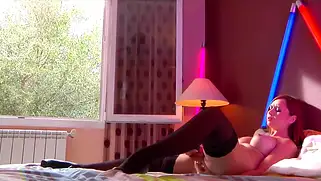Русскую кралю с натуральными титьками классно трахнут, заливая лицо спермой