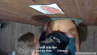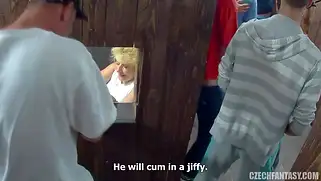 Парни выстраиваются в очередь чтобы трахать незнакомых шлюшек