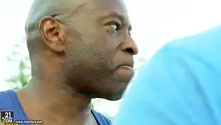 Красивая модель у бассейна сосет хуй негра и дает в жопу белому