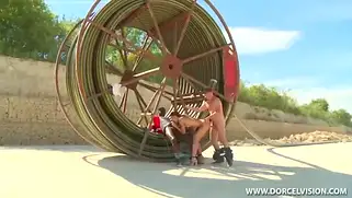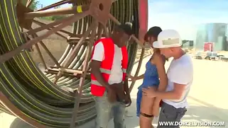 Порно видео Анал, Трах - Черный и белый кабельщики тянут оптоволокно в жаркой пустыне и к чувакам приезжает худая темноволосая француженка, чуваки надели на хер резину и стали трахать красотку во все щели на свежем воздухе и на складе