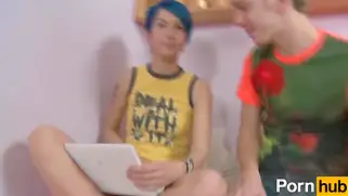 Порно видео В Сперме, Классный трах - Русский член проникает в киску молодой телочки с синими волосами, которая снимает перед парнем трусики и возбуждает его своей аппетитной попкой. Парень трогает задницу бабы и мнет её. Девушка готовится к минету и после орального секса хочет попробовать большой и длинный пенис своей влажной киской, которая заждалась проникновения во внутрь. Классный секс молодой парочки заканчивается отсасыванием глубоко в глотку. Парень же спускает в ротик много густой спермы.