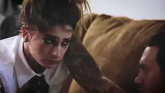- Парень доминант встречает у себя дома молодую красотку, которая давно влюблена в него. Татуированный плохиш использует это в своих пошлых целях. Девушка получает глубокое проникновение и горловой минет от сильного самца, который раком нагибает бабу для страстного траха на тесном диване и на полу.