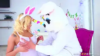 Marsha May - Сексуальная шлюшка с большой жопой позирует на камеру пятой точкой, поливая маслом булочки. Анальную дырочку она подставляет мужику в костюме, у которого торчит толстый и большой хуй. На этот член девушка и садиться тугой попкой, после чего и начинается ебля в попку. Много спермы капает в рот бабе.