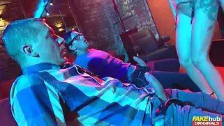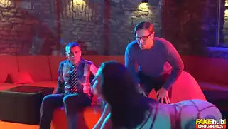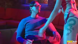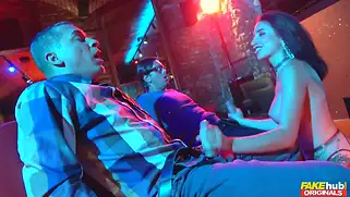 - Симпатичная шлюшка работает стриптизершей и танцовщицей в ночном клубе, где появилась новая услуга для клиентов - групповой секс с ними после представления на сцене. Девушке очень нужны деньги и поэтому она естественно будет показывать всем свою попку, а после прыгает на члене всех клиентов, кто был в зале.