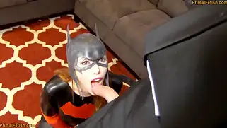 Порно видео HD, Минет - Порно бетмен в кожаной маске трахает свою подругу Lauren Phillips в костюме супергероини. Телочка сексуально берет в рот большой хуй напарника и делает минет, потом начинается ебля сучки со сливом спермы на лицо