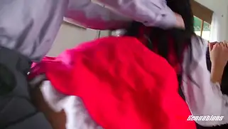 Маринка в секси наряде громко стонет от толстого члена в пизде мокрой