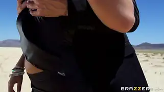Johnny Sins - Лысый красавчик в деловом костюме Johnny Sins вывез в пустыню похотливую блондинку Alexis Monroe. Девушка приняла хуй в рот и стала трахаться в анальном варианте, телочку залили спермой на природе