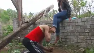 Порно видео HD, ххх русское - Выездная сессия доминирования русской госпожи над рабом случилась на свежем воздухе. Молодая телочка села на разрушенную кирпичную кладку и вытянула вперед голые ноги, парень стал облизывать изящные стопы