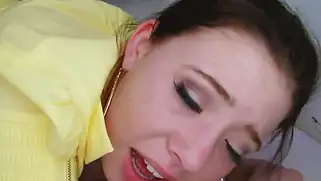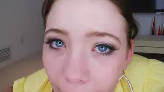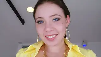 Голубоглазая шлюшка Alyssa сосет хуй в желтой рубашке