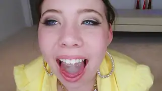 Порно видео HD, Минет от первого лица - Молодая голубоглазая шлюшка по имени Alyssa решила сделать минет от первого лица и заглотила большой член парня. Девушка с большими сиськами получила большую порцию спермы в рот после отсоса длинного хера